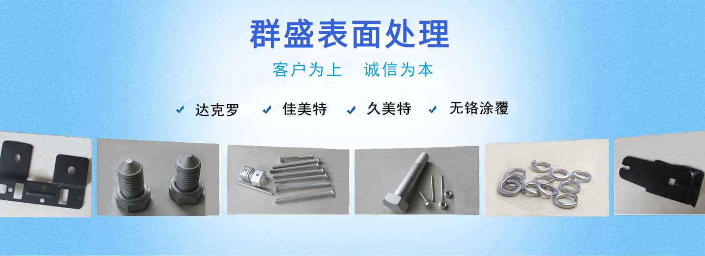 靖江市群盛表面處理有限公司,位于江陰長江大橋之畔靖江市城北園區山南路21號,成立于2007年3月。 公司引進了上海達克羅涂覆工業有限公司的全自動生產設備和溶液。技術人員曾多次在上海公司培訓,并得到該公司的技術支持。公司還配備了計量、理化檢測儀器和設備,以確保產品持續(xù)的品質。公司的涂覆加工中心是質量穩(wěn)定、設備優(yōu)良的達克羅、佳美特和無鉻涂覆加工基地。 公司現有六條自動流水生產線 ,月加工能力可達1000噸以上。憑借良好的生產設備和優(yōu)良的原料,賦予現場...